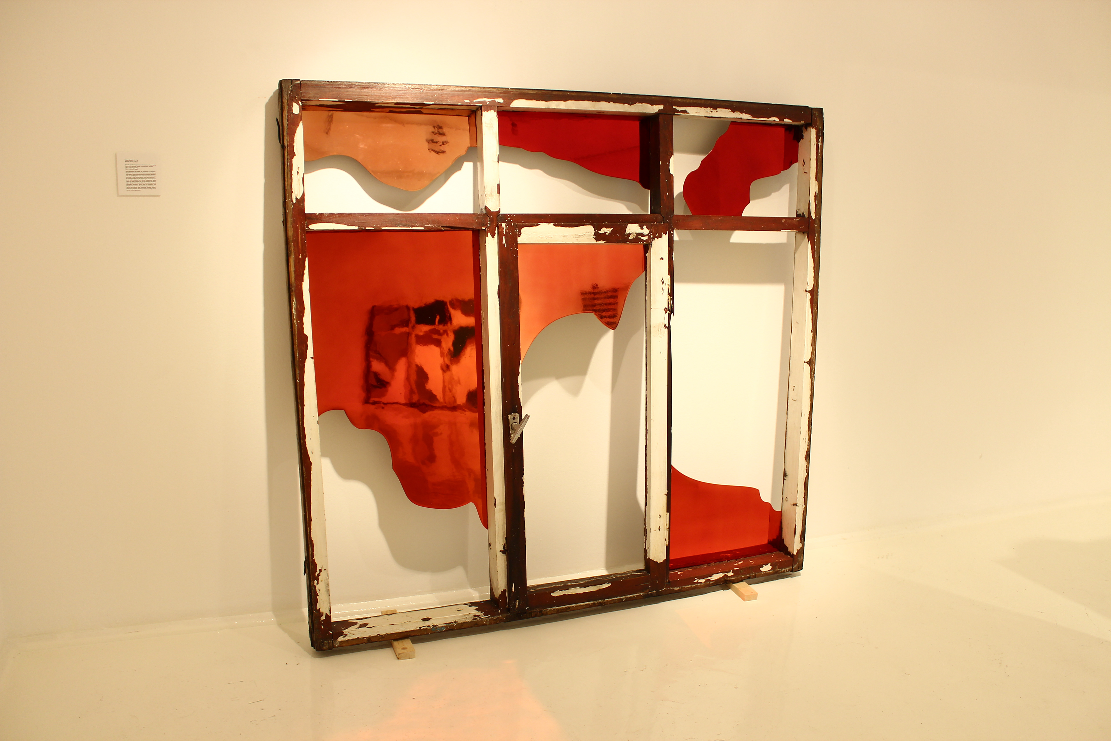 material: Found Slum Window, Metal, Chrome Paint, Varnish