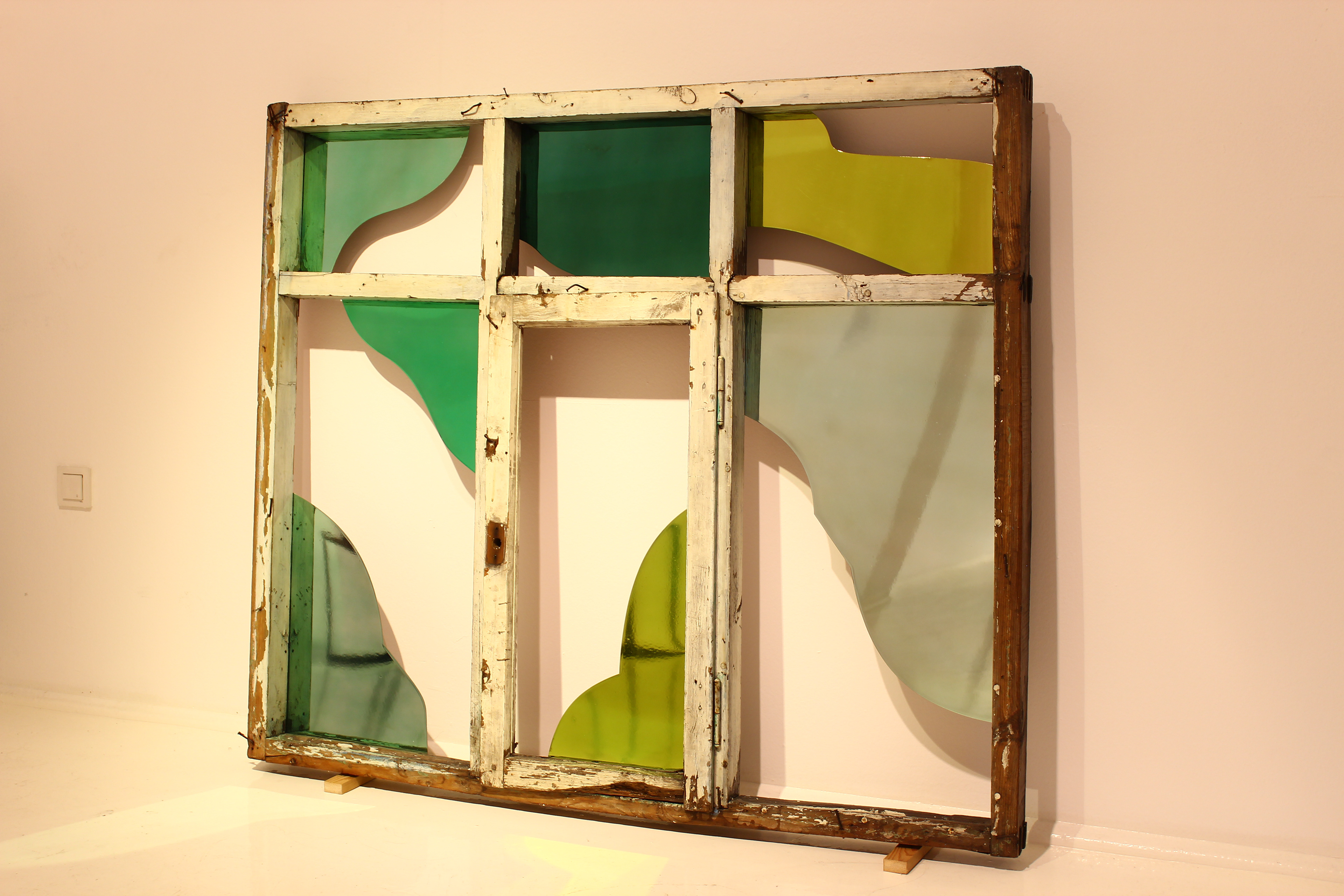 material: Found Slum Window, Metal, Chrome Paint, Varnish