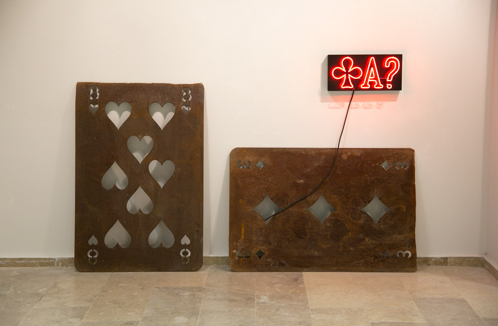 installation size: 220cm x 143cm (neon: 25cm x 48cm x 13cm, metal: each 81cm x 122cm)