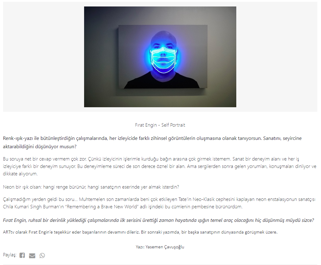 // Interview by Yasemen Cavusoglu, published on ArtTV Blog.