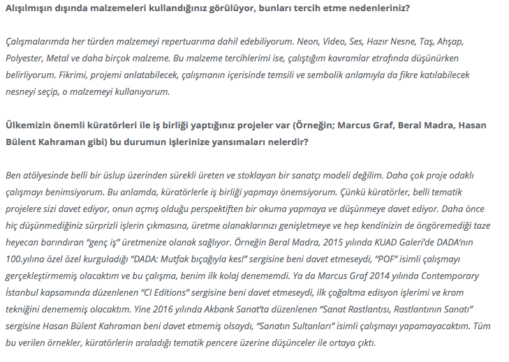 // Kültür Sanat Haritası, July - August. 2019 interview by Sule Ozbahar