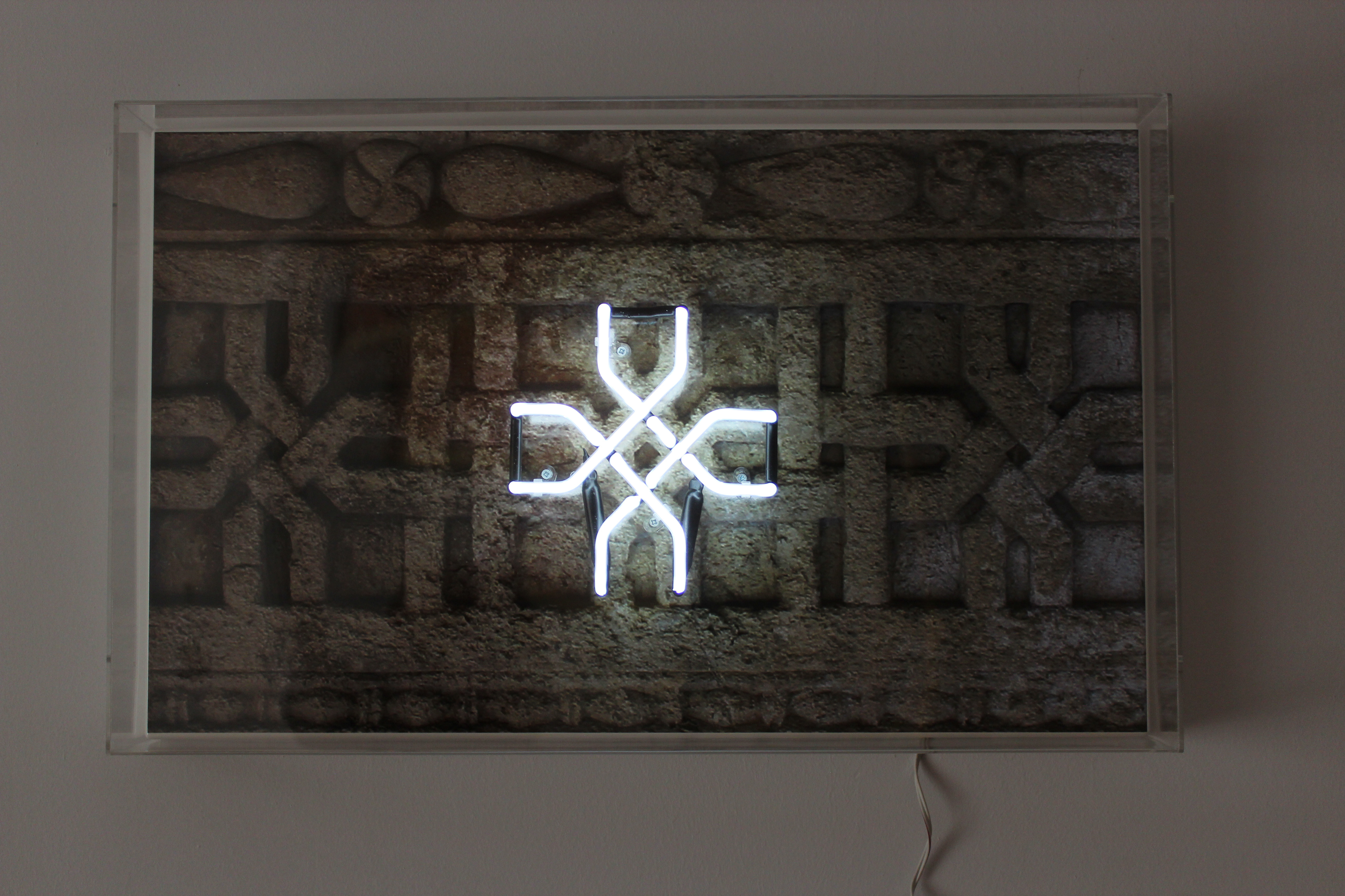 * The neon piece is specially designed for the show, but during the installation of the exhibition, neon piece has been decided to install the symbol above which is originally belongs to exhibition hall...